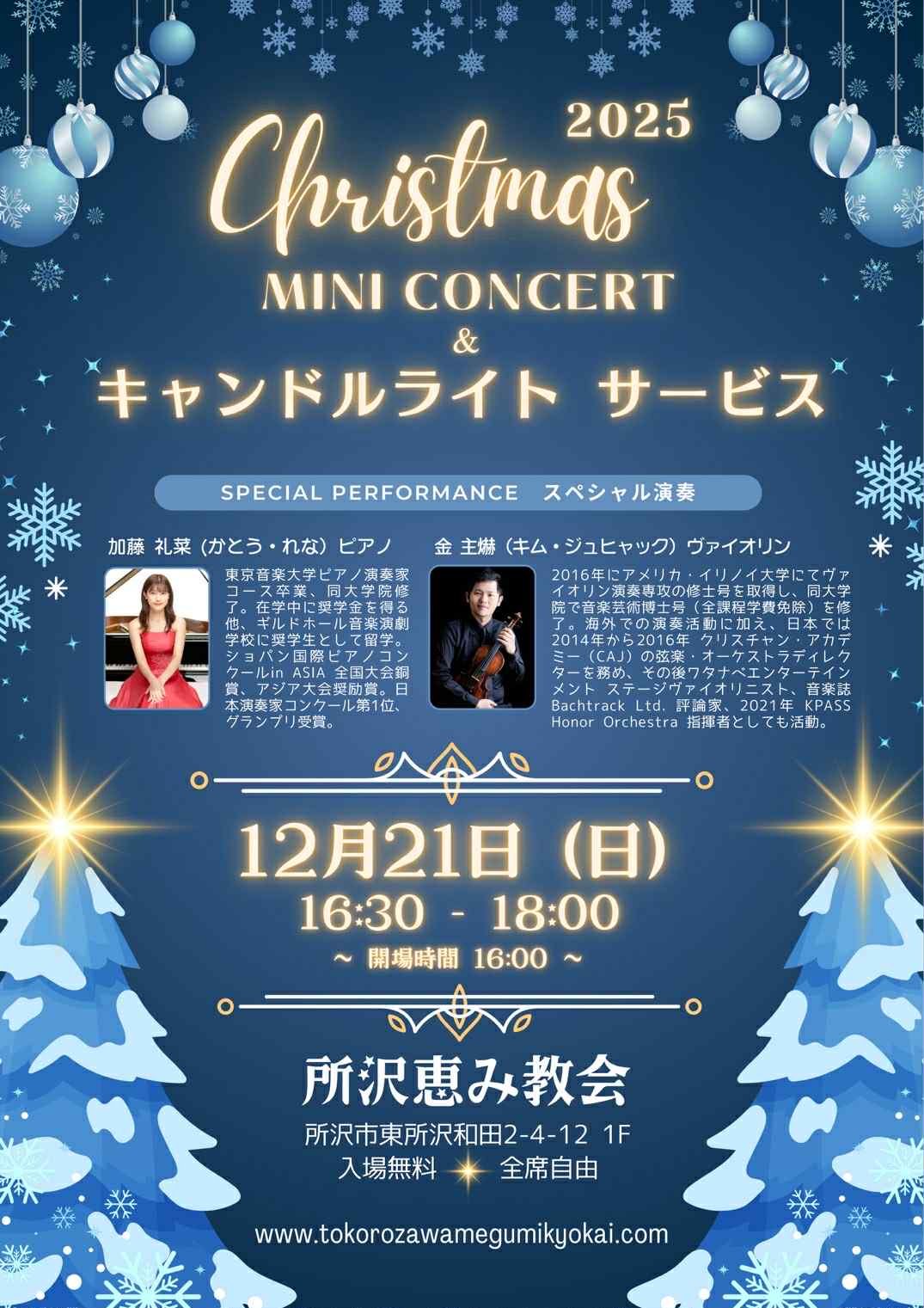 2025年12月21日午後4時30分より、所沢恵み教会で2名のアーティストをお呼びして